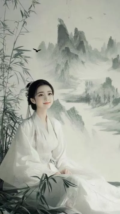 Blend Anime and Reality Girl Smile in Moving Ink Painting