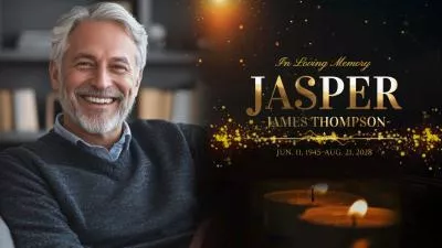 Golden Particle Memories Mourning Obituary Memorial Funeral for Male Love Photo Collage Slideshow