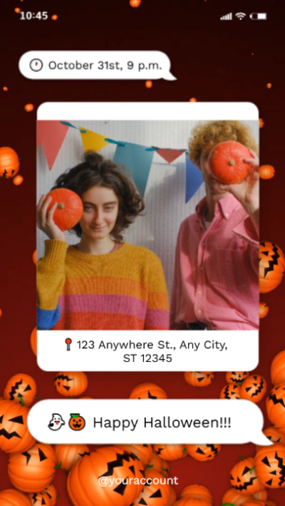 Do you want an electronic invitation that not only fits the Halloween theme but also has a fresh twist? Then this template—designed for sharing on various social media platforms—is definitely one you should have!