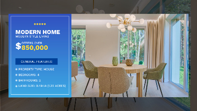 This is simply an excellent template for real estate promotion! This template contains clear prices and pictures of the houses. If you need it, you can use it for free on FlexClip!