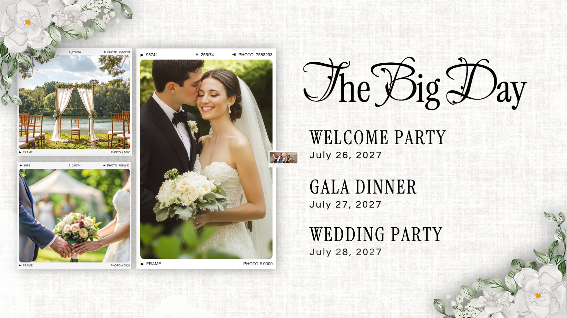 White Flower Wedding Countdown Invitation Engagement Anniversary Love Memories Collage Slideshow