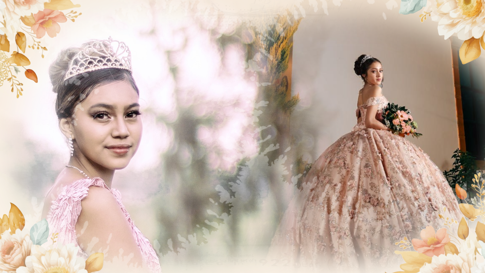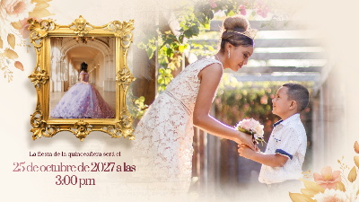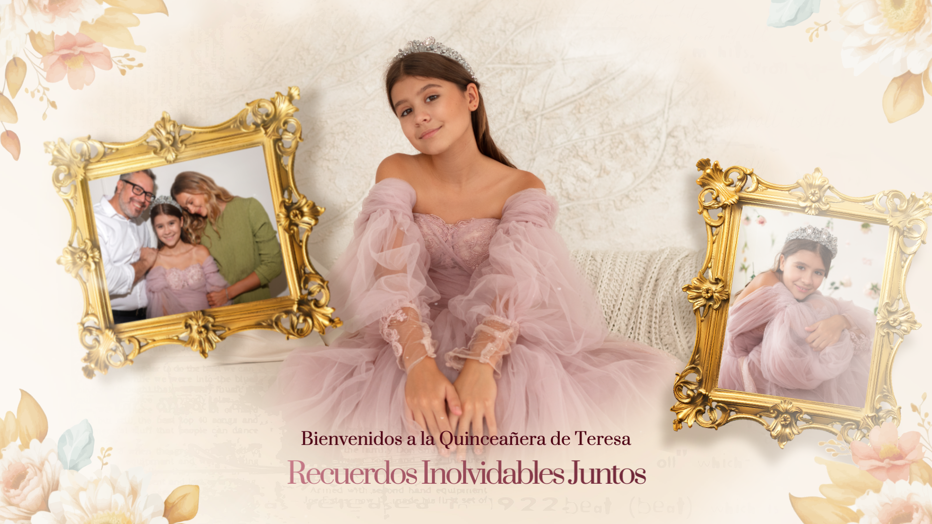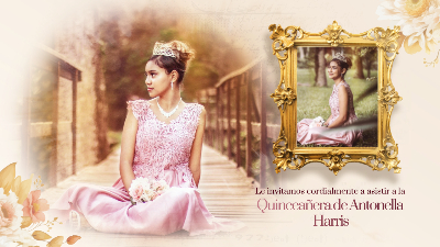 Ink Flowers Quinceanera Birthday Invitation Anniversary Celebration Photo Collage Slideshow