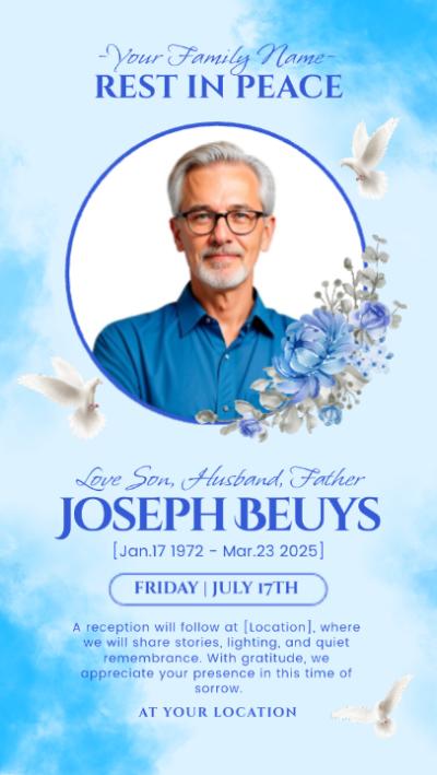 Sky Heaven Memorial Announcement Funeral Tribute Invitation Card Intro