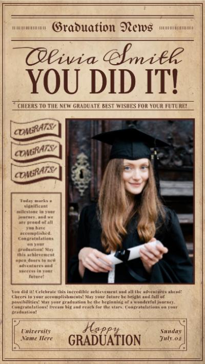 Vintage Newspaper Happy Graduation Announcement Poster Story