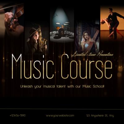 Here's a promotion for music courses. The page is simple and concise, and it's especially great for promoting classical instrument courses. Come use FlexClip for free now!