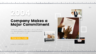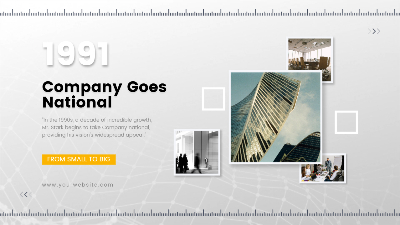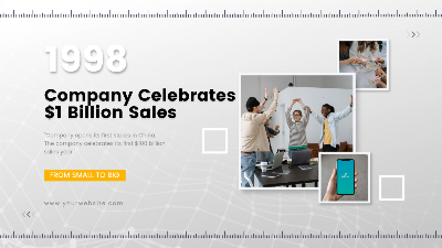 Are you in need of a neat layout template to showcase your company's development over the years? This template is a good choice for you—you can use it as an introduction to your company or just as a presentation to promote your business. Try it now!