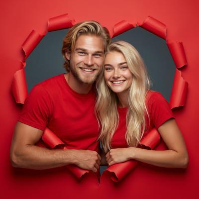 How could a Valentine's Day template be complete without this! The red and heart-shaped background, combined with the kissing gesture, is perfect for a surprise announcement, isn't it? Click on FlexClip and start trying it out right now.