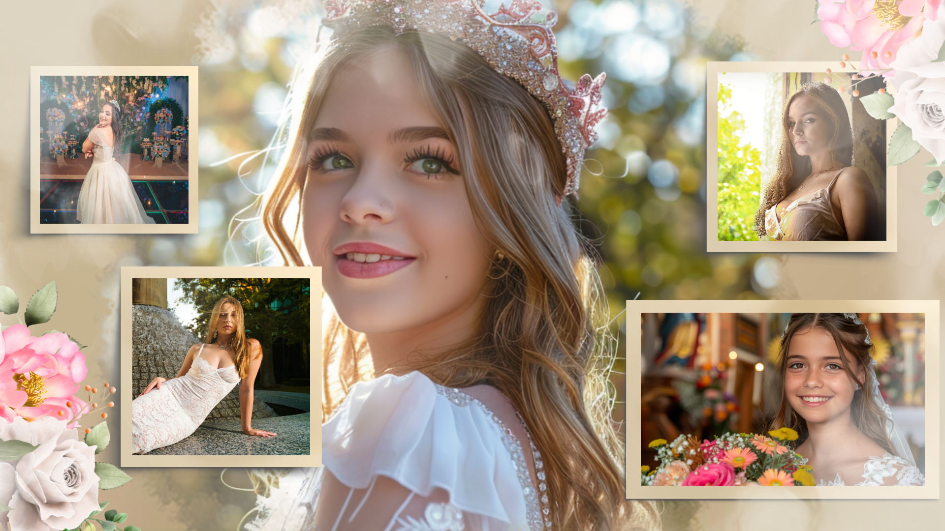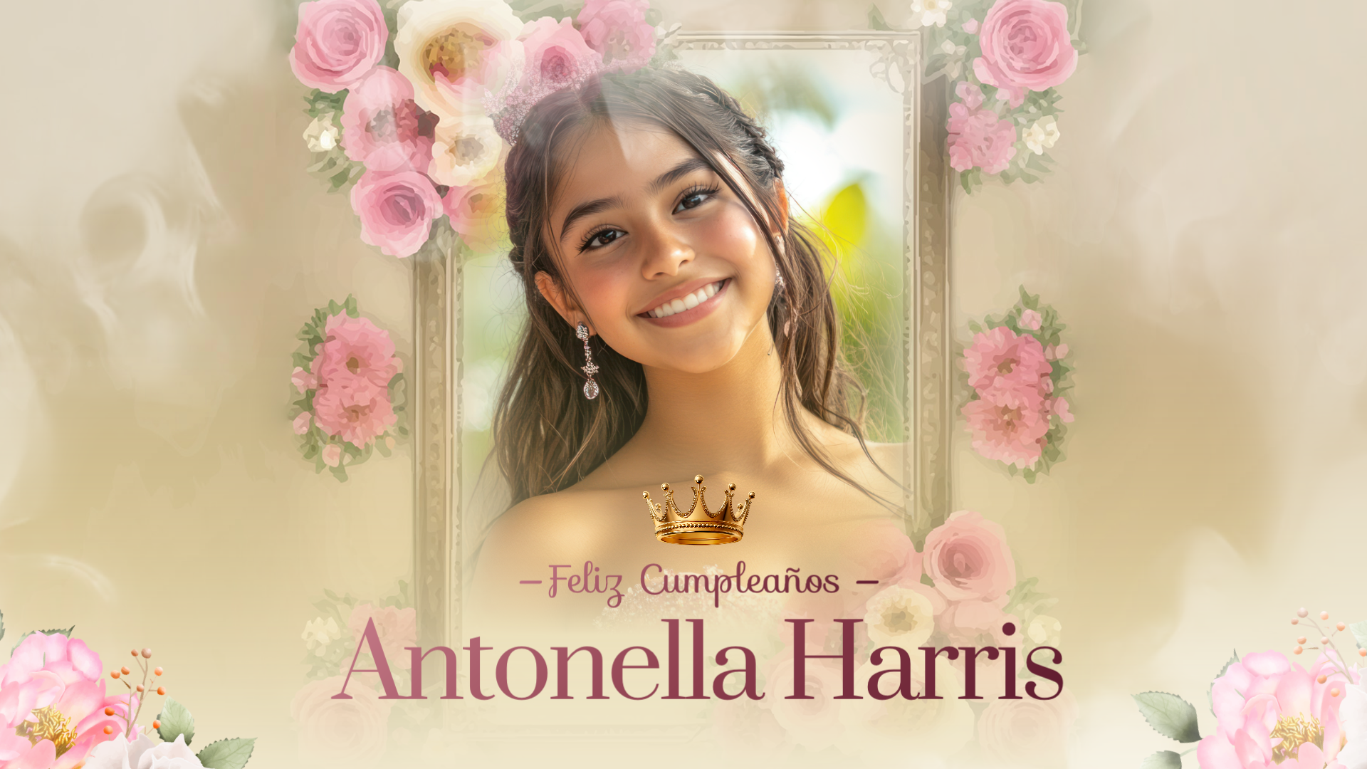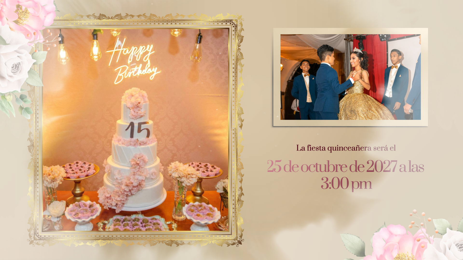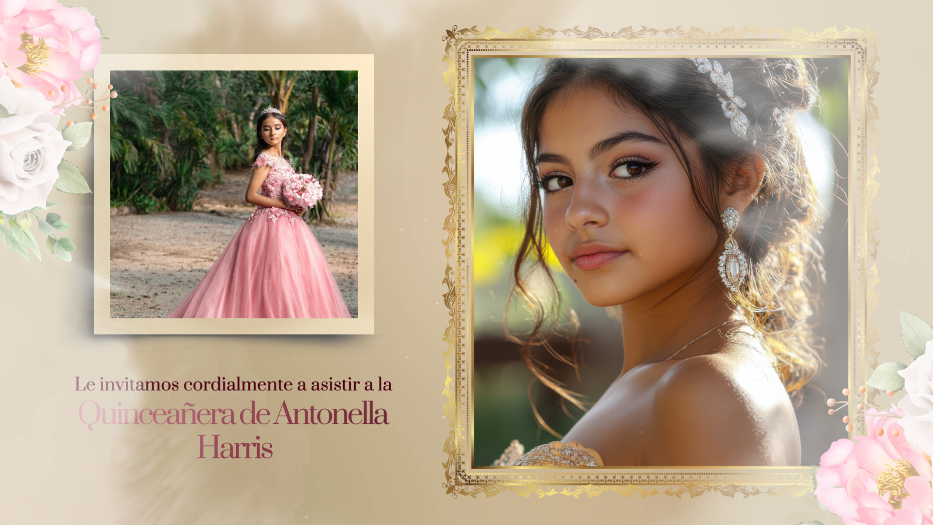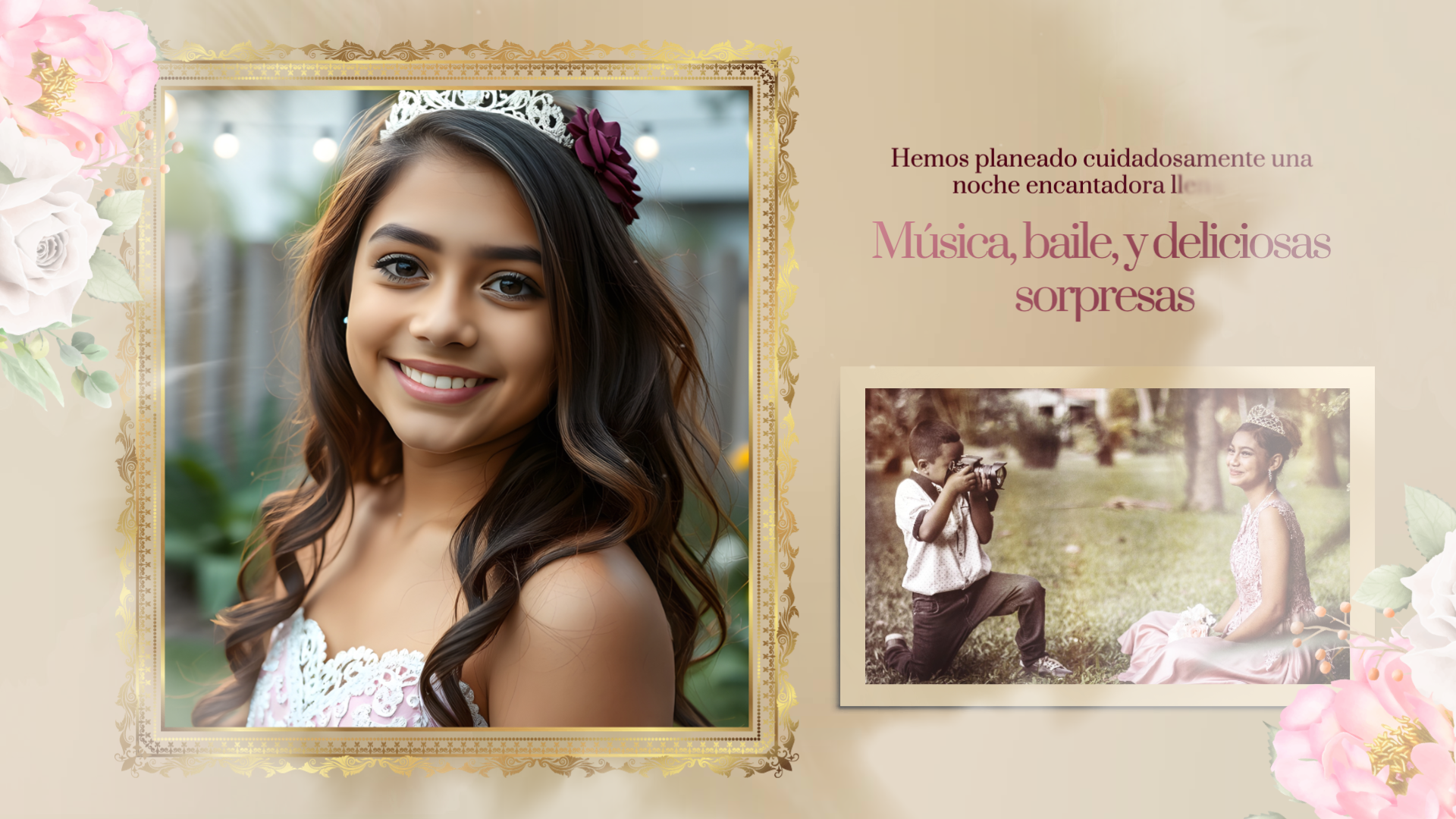 This is a Spanish-style video template for a girl's birthday celebration, filled with warm colors and floral elements. If it meets your needs, then please click on FlexClip!