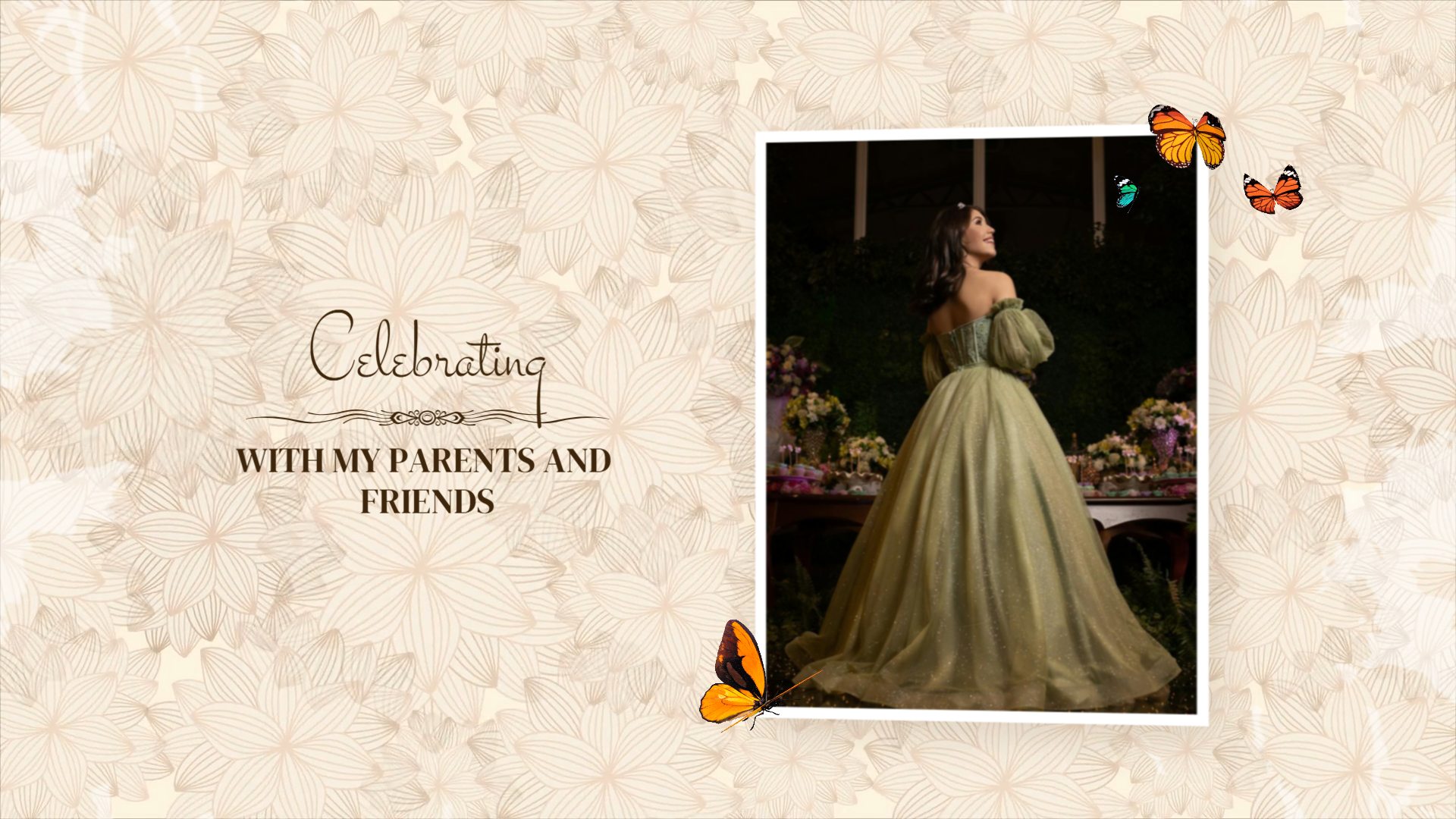 Retro Butterfly Flowers Quinceanera Birthday Invitation Anniversary Love Photo Album Slideshow