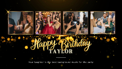This is a black and gold birthday video template. The noble and elegant background color embellishes those wonderful birthday memories. If you also want to have such a beautiful birthday video, come to FlexClip to create it!