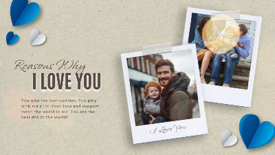Father accompanies us throughout our growth. During the process, there must be many wonderful stories and photos. Father's Day is here. Let's use this template in FlexClip to create your Father's Day slideshow together!