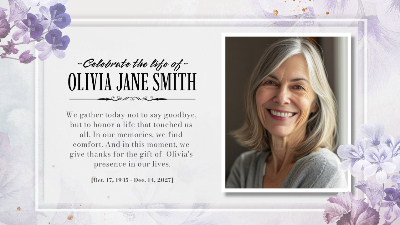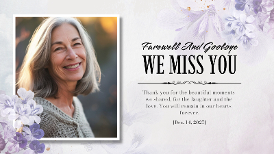 This is an elegant funeral template designed specifically for women. You can sense the feminine aesthetic aspect in the design. If you want to commemorate a certain woman, this template is absolutely perfect for you! Click on FlexClip to get it for free.