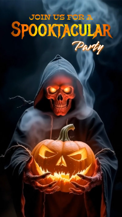 Looking for scary and horror Halloween invitation? Try this ghost and pumpkin template by FlexClip! It's spooky yet chic—add your party time and address, then share it on X or Pinterest!
