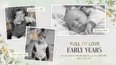 This is an elegant and warm memorial template. You can customize the content freely within FlexClip, add the voice and appearance of the deceased, and create a video of memories dedicated to them!