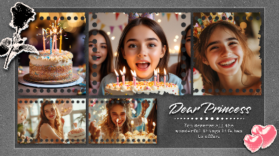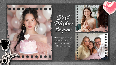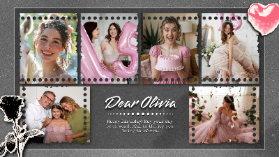 Looking to convey the joy of birthday with a graceful, film-style video? This playful, quinceañera template designed by FlexClip is ready for you! It costs nothing to use, and customizing the content is a breeze. Start sharing your sincere birthday wishes right away!