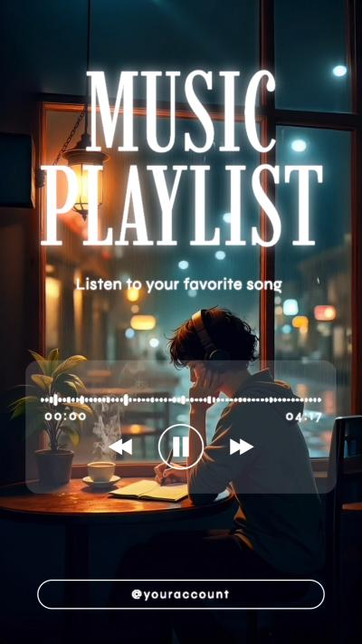 Want to make a unique playlist with your favorite songs and share it on social platforms? This FlexClip-made template is modernly designed and holds a night vibe. It lets you fully customize your music picks for a one-of-a-kind shareable list.