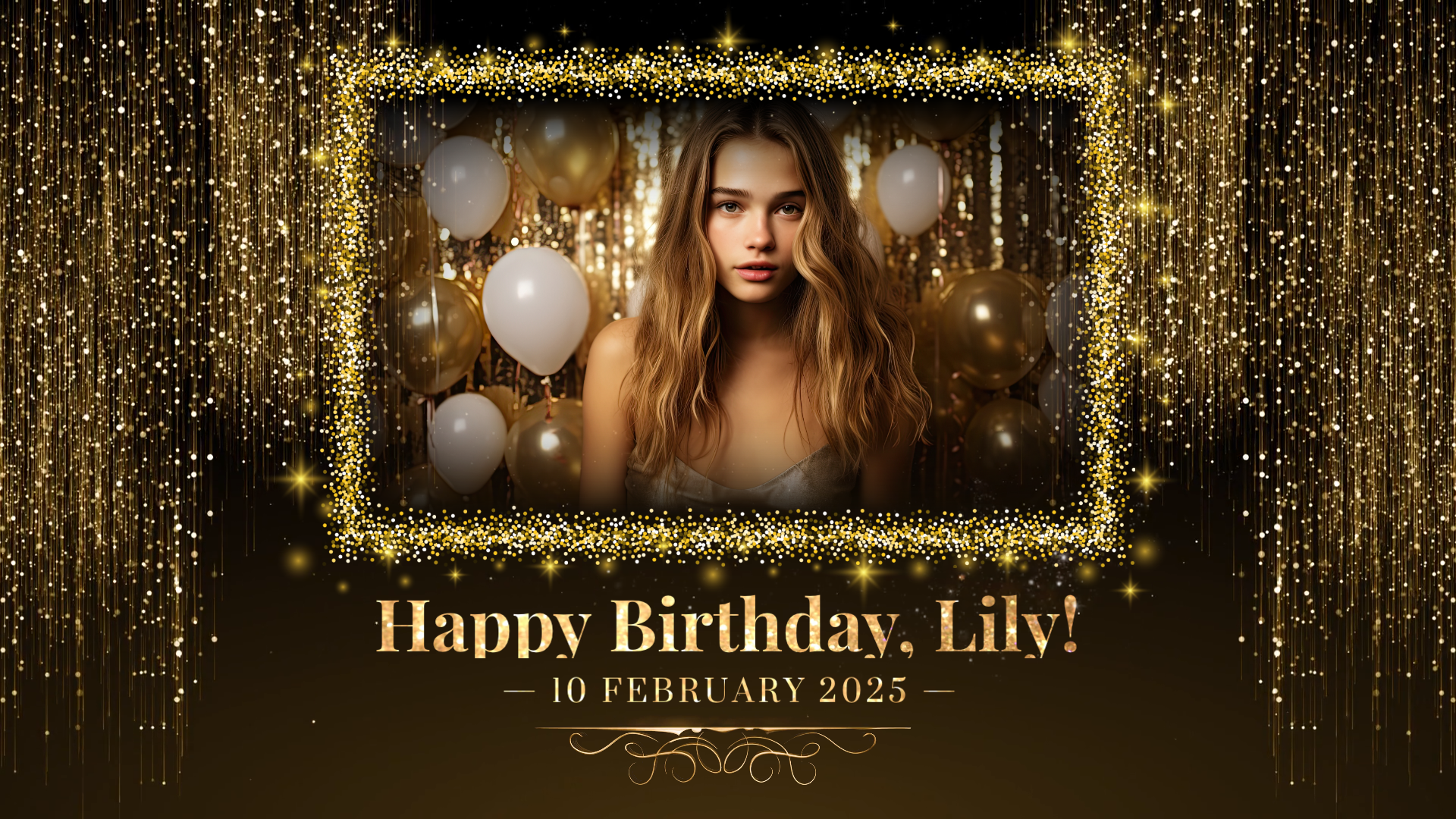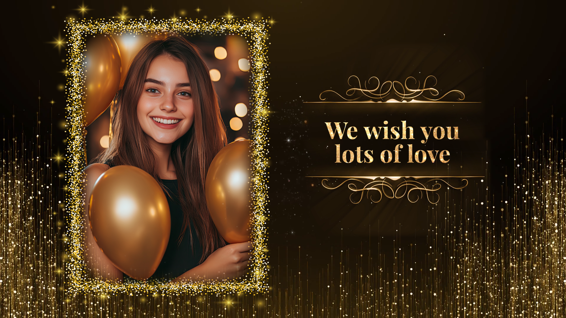 On your birthday, you can feel the love and enthusiasm from your relatives and friends. This is a golden-advanced birthday celebration template. Just customize it and you can make your own!