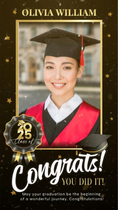 Graduation is not just a ceremony; it marks the beginning of a new stage in life. Quickly use this template to document that energetic and confident version of yourself! A bright future ahead!Don't miss this template in FlexClip!