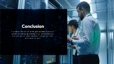 A company's development relies on both preparations for development and crisis response. This corporate half-year summary presentation template is concise yet comprehensive, covering all essential aspects. Created with FlexClip, it helps everyone gain a clearer understanding of the company's performance over the past six months and its outlook for the future!